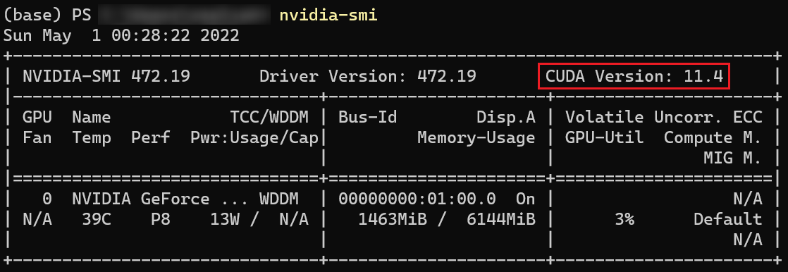 根据当前系统显卡驱动的版本安装合适的CUDA,这里收集了所有的CUDA版本。 例如,我电脑型号R9000P,显卡型号NVIDIA RTX 3060 LAPTOP,通过nvidia-smi,查看CUDA Version,可看到我的CUDA版本是11.4,于是我选择安装CUDA 11.4.4版本,大家可以根据自己的实际情况。