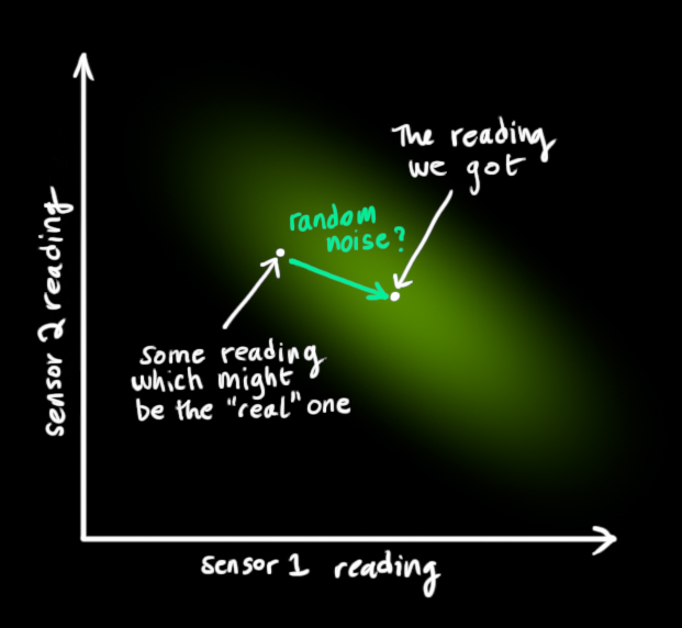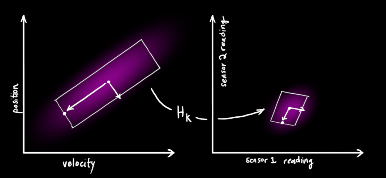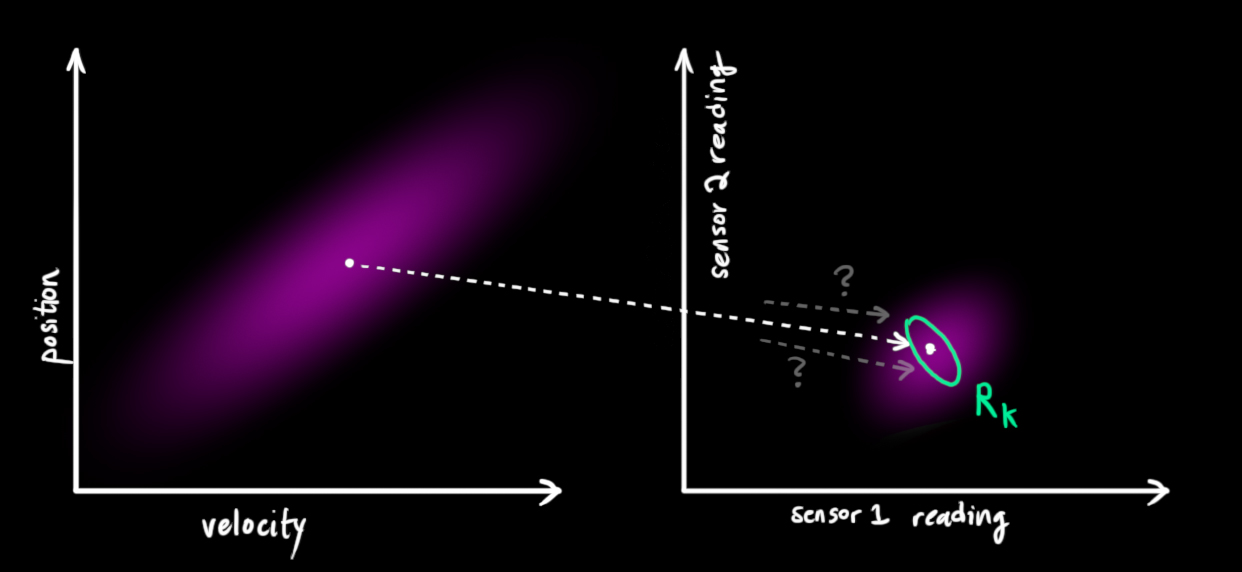 假设我们有几个传感器,这些传感器可以向我们提供有关系统状态的信息。就目前而言,测量什么量都无关紧要,也许一个读取位置,另一个读取速度。每个传感器都告诉我们有关状态的一些间接信息(换句话说,传感器在状态下运作并产生一组测量读数)。